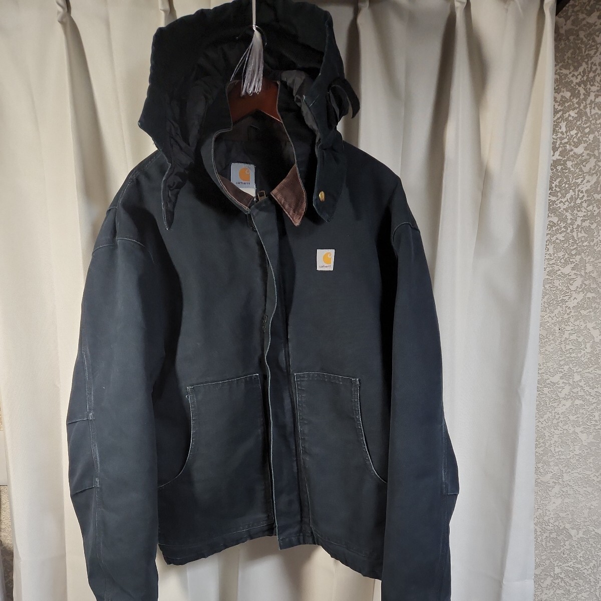 - Carhartt カーハート ジャケット ダック地 古着 フード取り外し可能 黒色 ブラック ワークジャケット ブルゾン