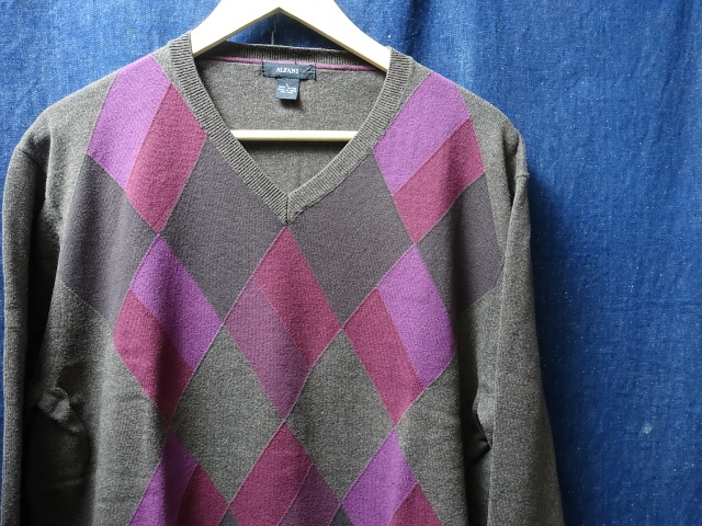 > SALE USA アメリカ 古着 ALFANI Vネック アーガイル柄 ダイヤ柄 薄手 コットン ニット セーター L / 40 sale セール 卸
