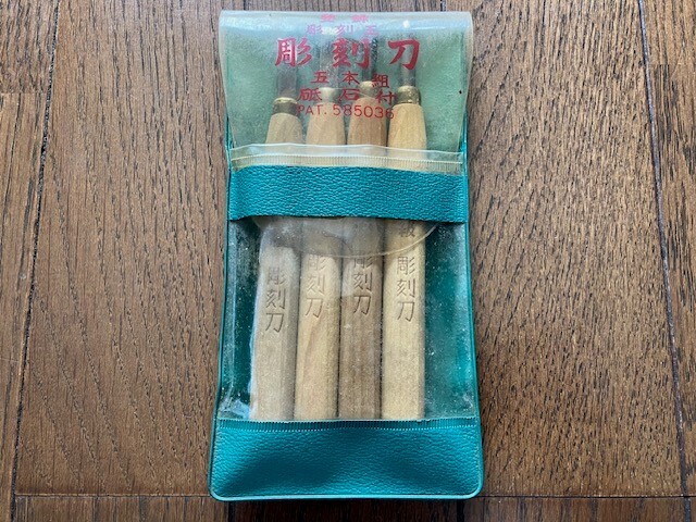 - 彫刻王 彫刻刀 4本 木部:直径1.4cm 長さ11.2cm 昭和 当時物 45年程昔のもの 木彫り 木工 ウッド カービング 送料無料 底値