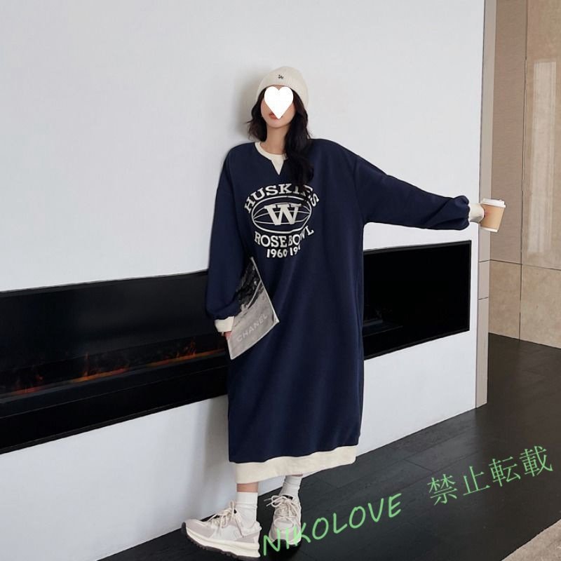 - 新品裏起毛ワンピース パーカーワンピース 大きいサイズ レディース ゆったり ロング レディース 切り替え ロング丈 L-4XL AA414