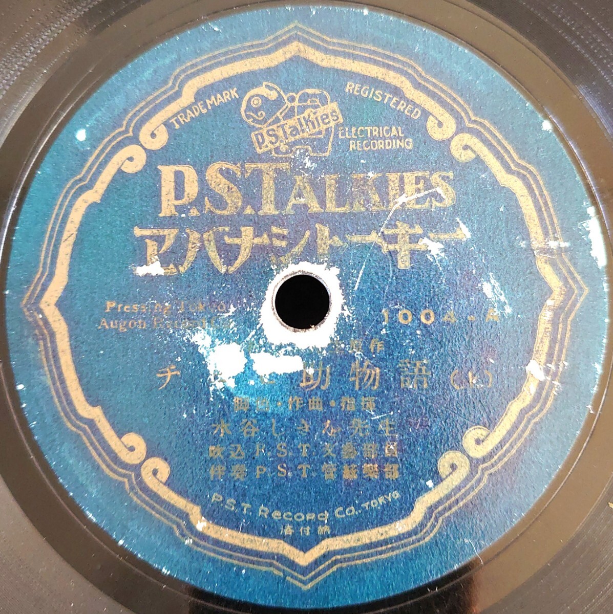 - 【SP盤レコード】P.S.T ALKIES 1004-AB ヱバナシトーキー/チヨビ助物語(上・下)-チョビ助/脚色・作曲・指揮 水谷しきを先生
