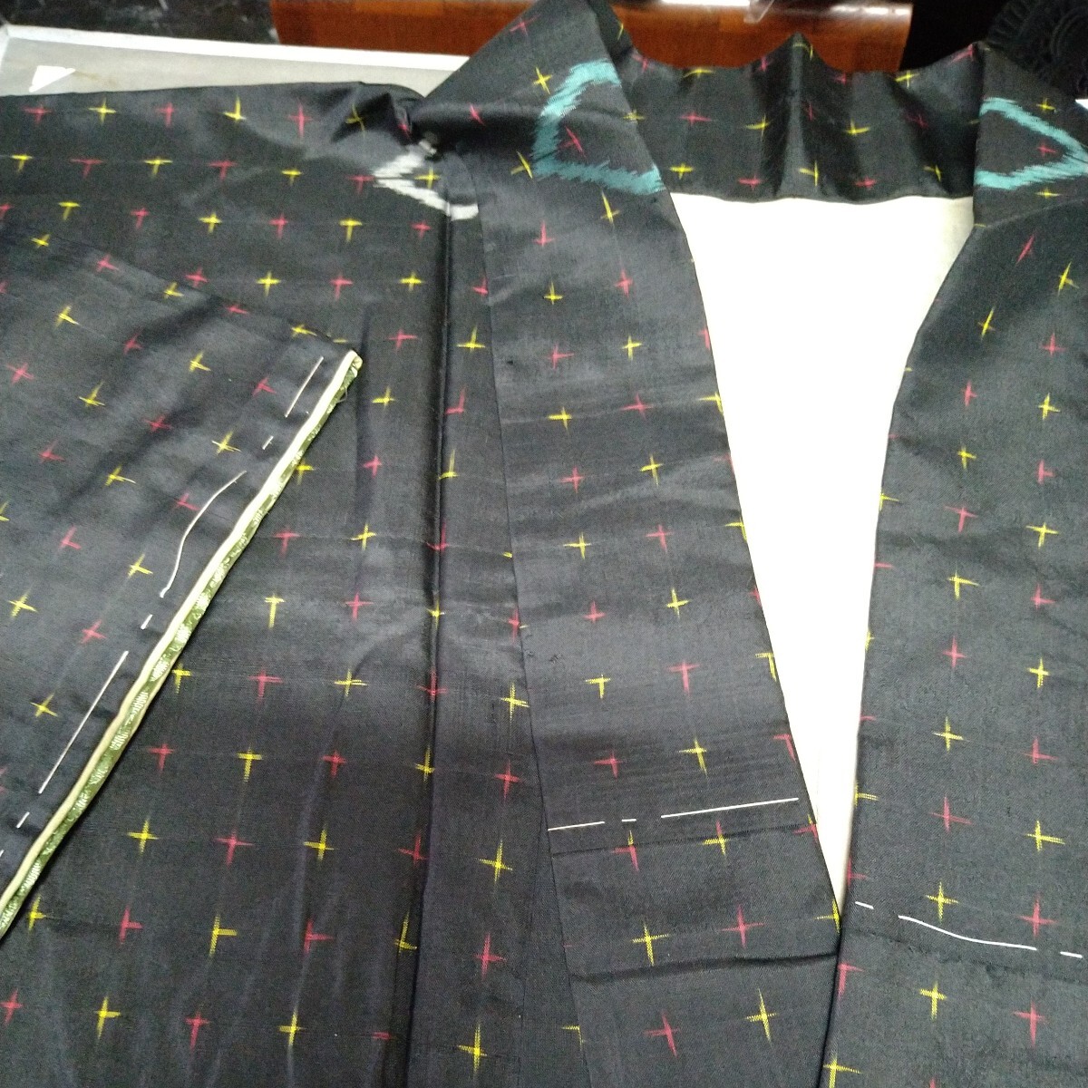 - 正絹 紬着物 バチ衿 145cm位の方に。裏シミ難有り。 リメイク材料