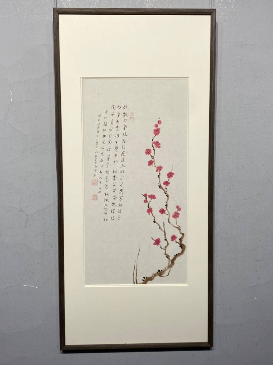 - 古美術 扁額 中国・近現代 張伯駒書 「紅梅図」 紙本 掛屏 額装 書道 真筆逸品 肉筆保証 極細工 唐物 書画 LT-24238