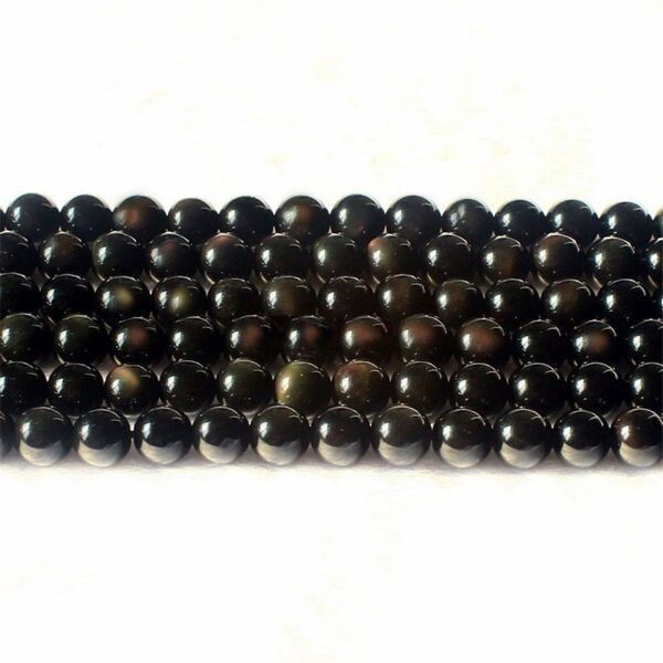 - [EasternStar] 海外発送 7A レインボー オブシディアン 黒曜石 紫目 パープルアイ 玉サイズ12mm 1連売り 長さ約40cm