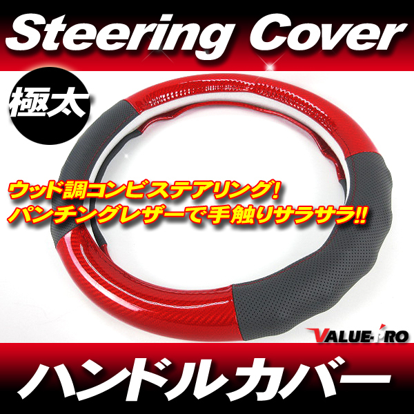 > [太め] 赤レッドカーボン&パンチングレザーコンビ ハンドルカバー 2HS-B 45cm ◆ レンジャー プロフィア フォワード コンドル