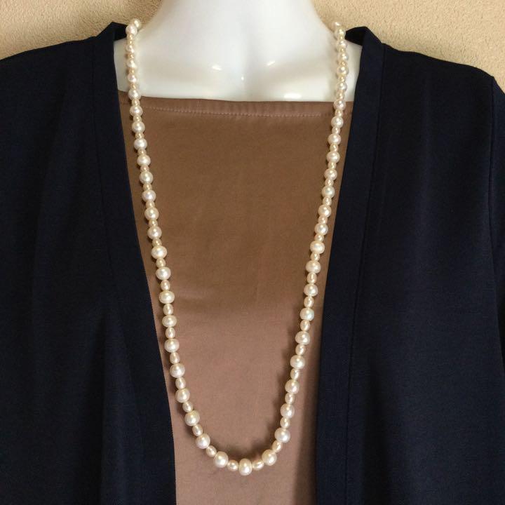 - 真珠最新作ロングネックレス本物淡水パール約78cm冠婚葬祭フォーマル人気ファッション着用天然色ホワイト系【現品限定】