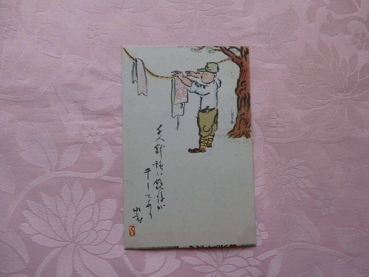 - 古い軍事郵便はがき 洗濯を干してる軍人さん