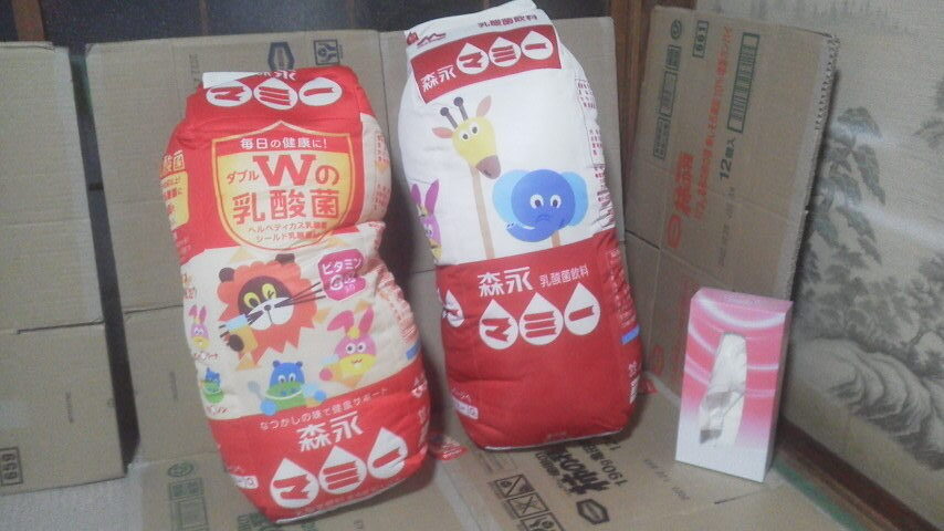 - 森永マミー ぬいぐるみクッション vol.2 60cm 全2種セット BIG 乳酸菌飲料 牛乳 パック 120サイズ
