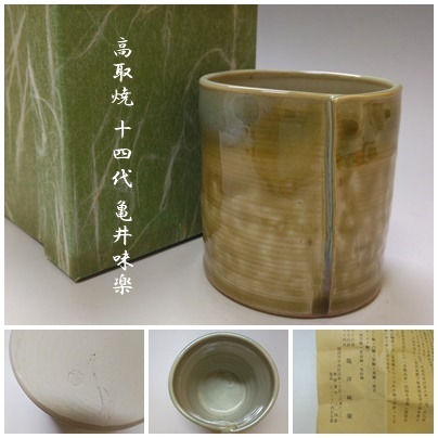 - 【T-147】高取焼 十四代 亀井味楽 湯呑/ぐい呑み 未使用