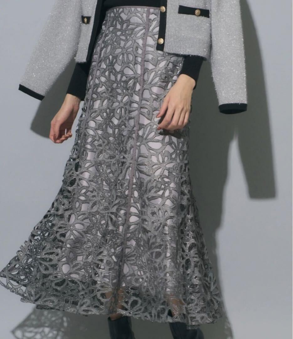 - 【新品タグ付き】マイストラーダmystrada, アリッサラメレーススカート, チャコールグレー
