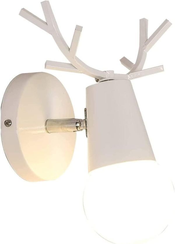 > OTD ブラケットライト アンティーク調 1灯 レトロ 可愛い 鹿角ライト 鉄芸 個性的 おしゃれ ウォールライト(ホワイト、電源直接式)