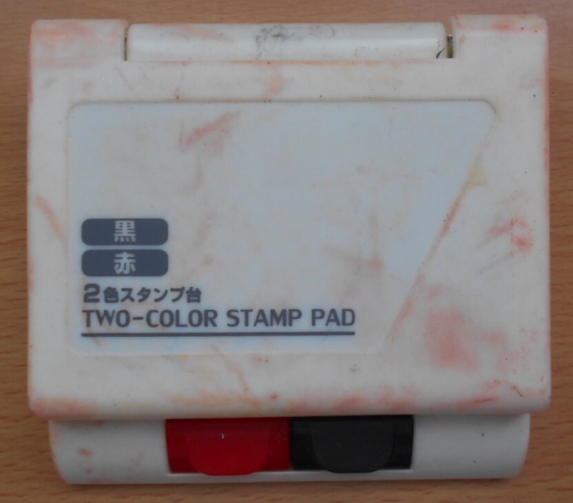 - 2色スタンプ台 TWO-COLOR STAMP PAD 赤黒 中古 1点