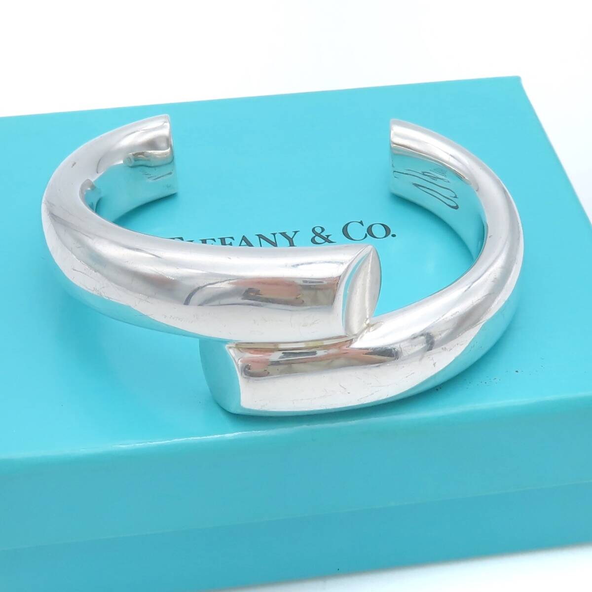 > 極希少 Tiffany&Co. ヴィンテージ ティファニー オーバーラップ シルバー カフ バングル SV925 ブレスレット ダブル HH304
