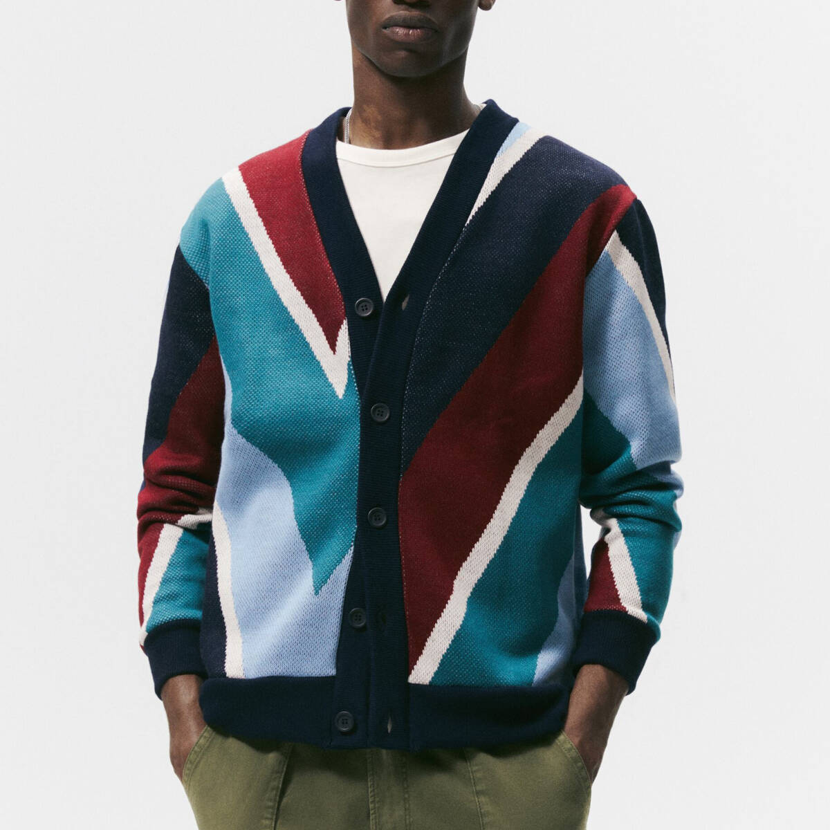 - ZARA ザラメンズ ジャガードニットカーディガンLサイズ
