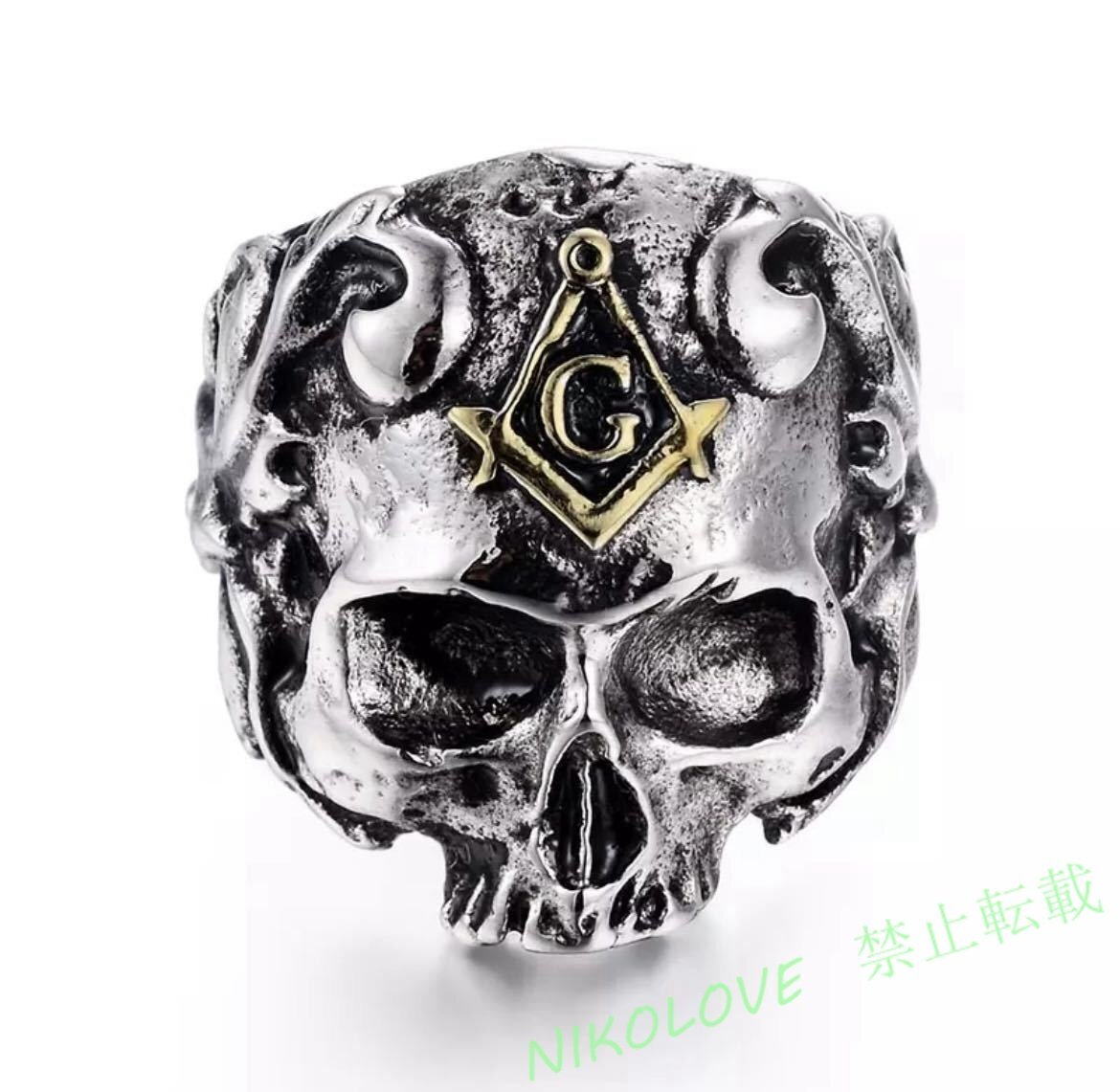 - 新品 サイズ調整可能ドクロ指輪 リング 指輪 アクセサリー 頭蓋骨 悪魔 クール 髑髏 ガイコツ 骸骨 ドクロ スカル LA317