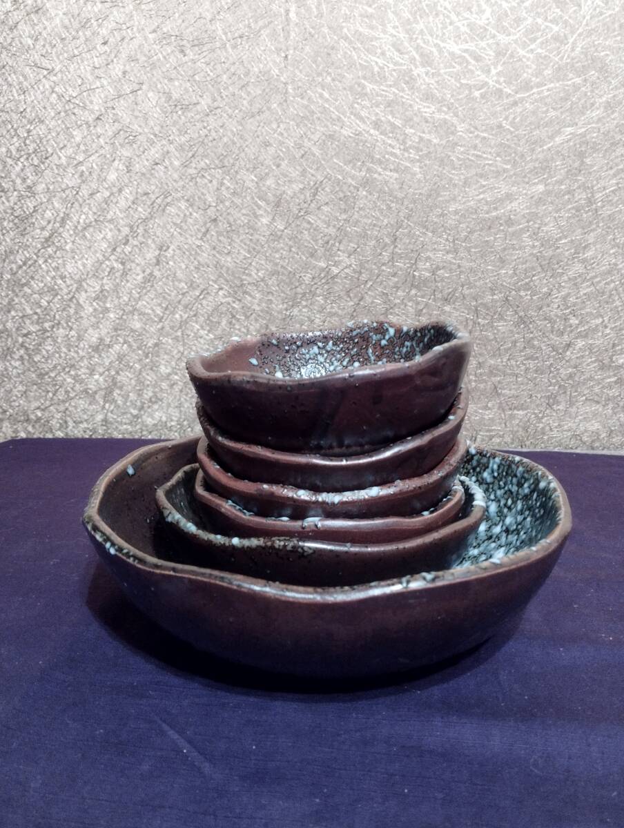 - 益子焼 大鉢 中鉢 小鉢 5枚組 在銘品 未使用品