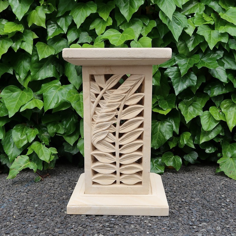 - 石像スタンド パームリーフ 30X30X49 パラスストーン 石像台座 庭 ガーデン オーナメント ヤシの葉 椰子 やし ランプ 250858