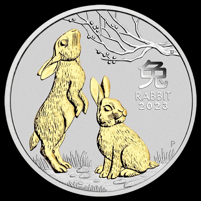 - [保証書・カプセル付き] 2023年 (新品) オーストラリア「干支 十二支・卯年 兎年」純銀 1オンス 金メッキ 銀貨