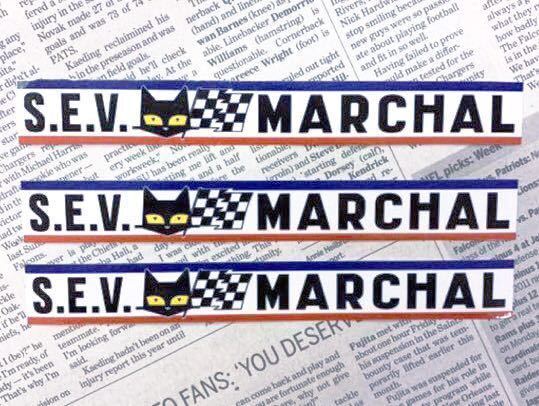- ステッカー3枚セット/MARCHAL マーシャル (ロング) ネコ ヘッドライト レーシング 車 バイク カスタム 防水 シール 人気 ブランド アメ雑
