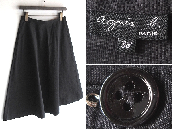 - ネコポス対応 agnes b. アニエスベー コットンポプリン フレアスカート 38 黒 ブラック 日本製