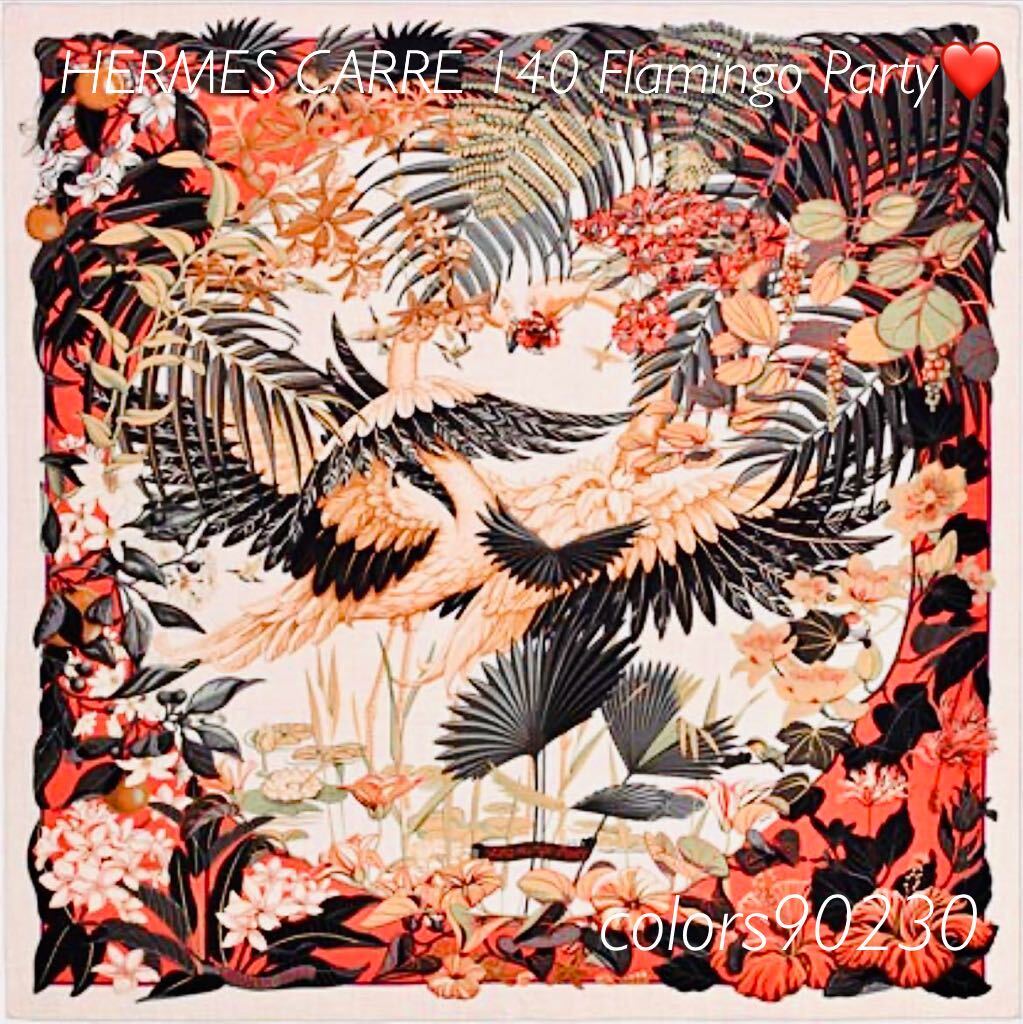 - 極美品◆ エルメス カレジェアン カシミヤシルク 大判スカーフ ストール カレ140 カシシル フラミンゴパーティー ナチュラル ノワール