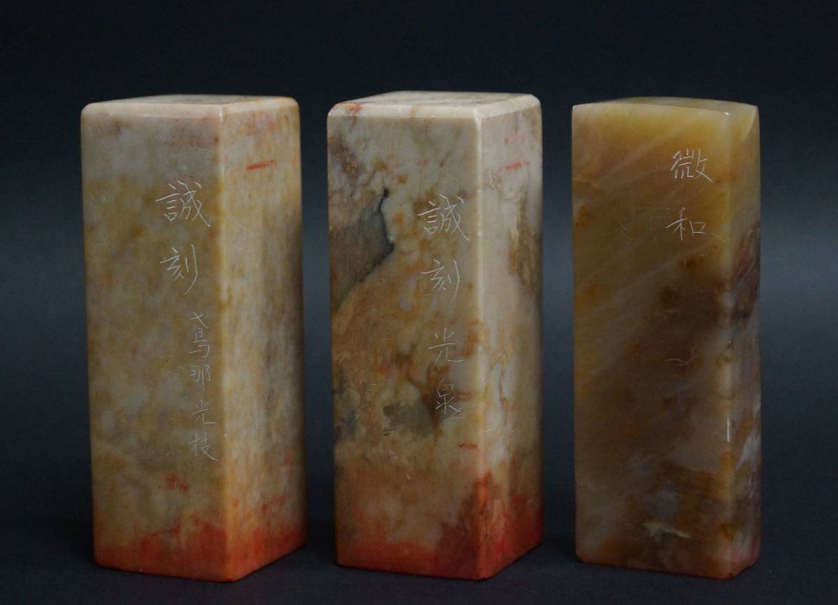 - 【閑】古印材 寿山石 氷凍石 細工彫り 印材 3点セット 美しい石目 ★時代物★5D1117