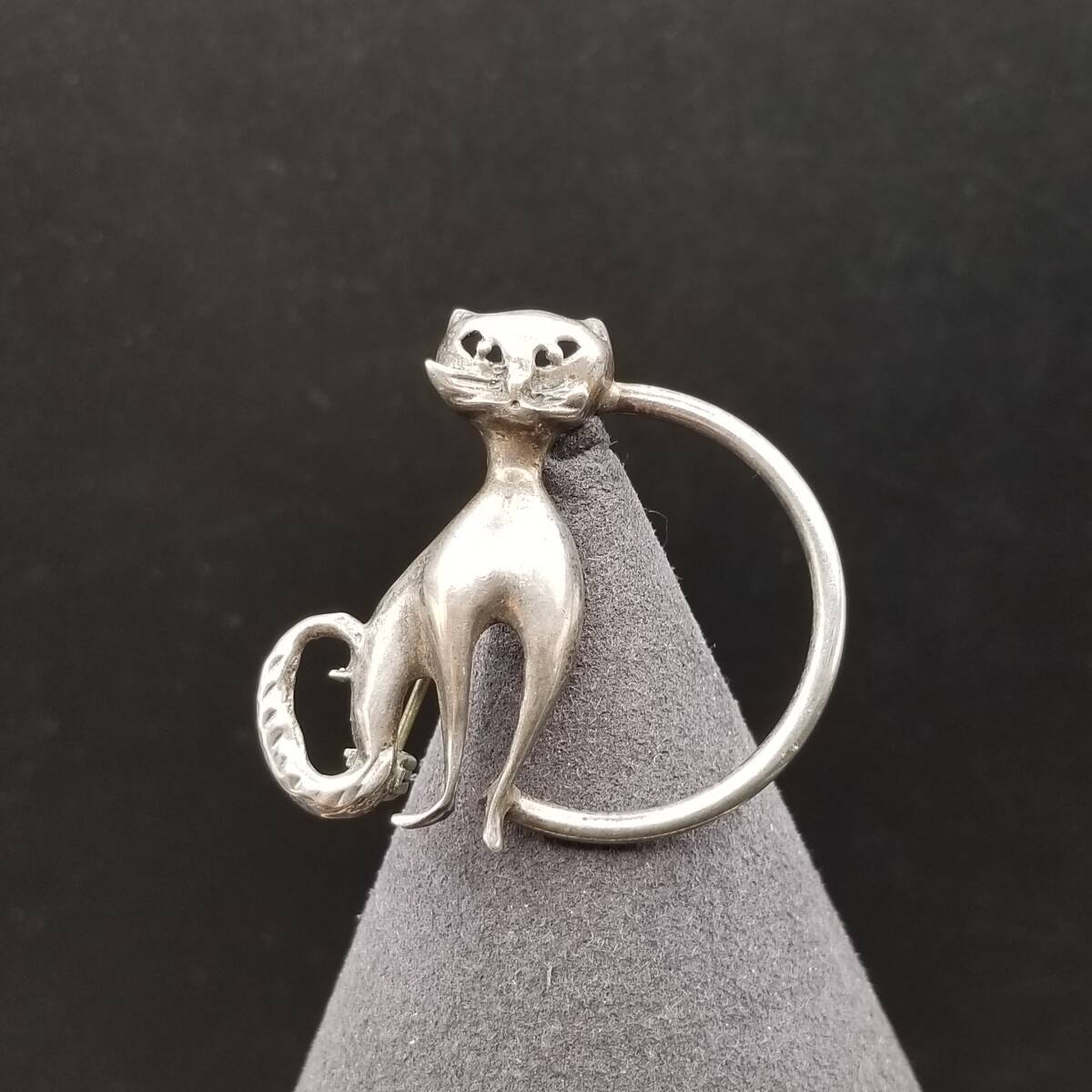 > MEXICO メキシコ 猫 モチーフ レター D アルファベット 925 キュート ヴィンテージ シルバー ブローチ ジュエリー 輸入 Y14-T