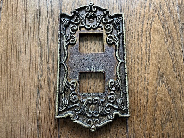 - ナショナル 重厚 彫刻風 金属製 2口 スイッチプレート 縦15.2cm/横8cm/厚1cm/229g 昭和 当時物 復元 撮影所 送料無料 底値