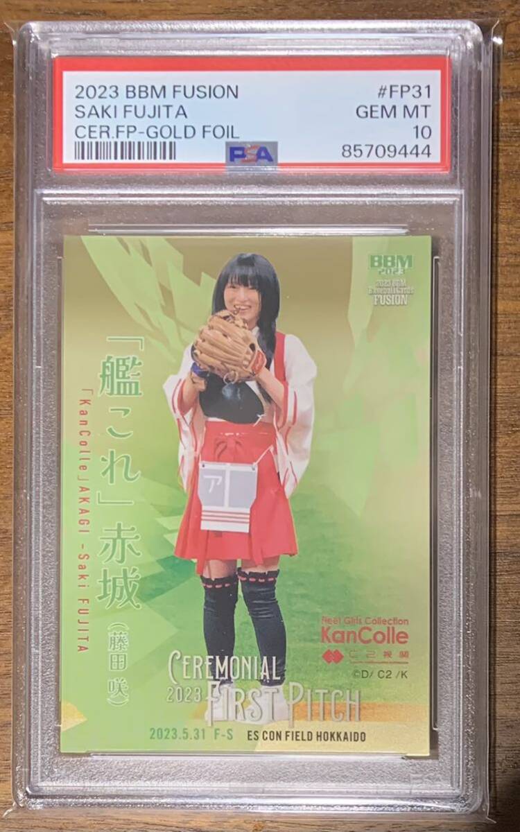 > BBMベースボールカード FUSION 2023 「艦これ」赤城(藤田咲) 始球式カード 100枚限定 金紙版 PSA10