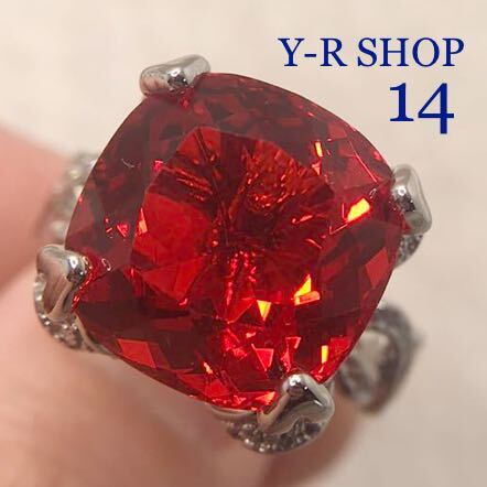 - 14号★レッドガーネットとキュービックジルコニアのゴージャスリング★レディース指輪シルバーアクセサリーカラーストーン新品宝石Y-Rcz