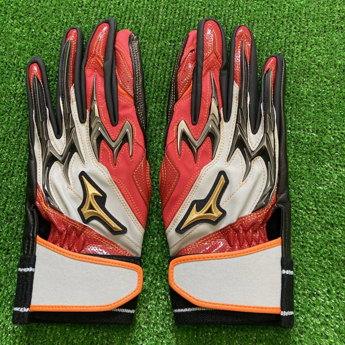 > 44 限定品 ミズノプロ バッティング手袋 両手 26cm レッド×オレンジ 1EJEA53061 新品