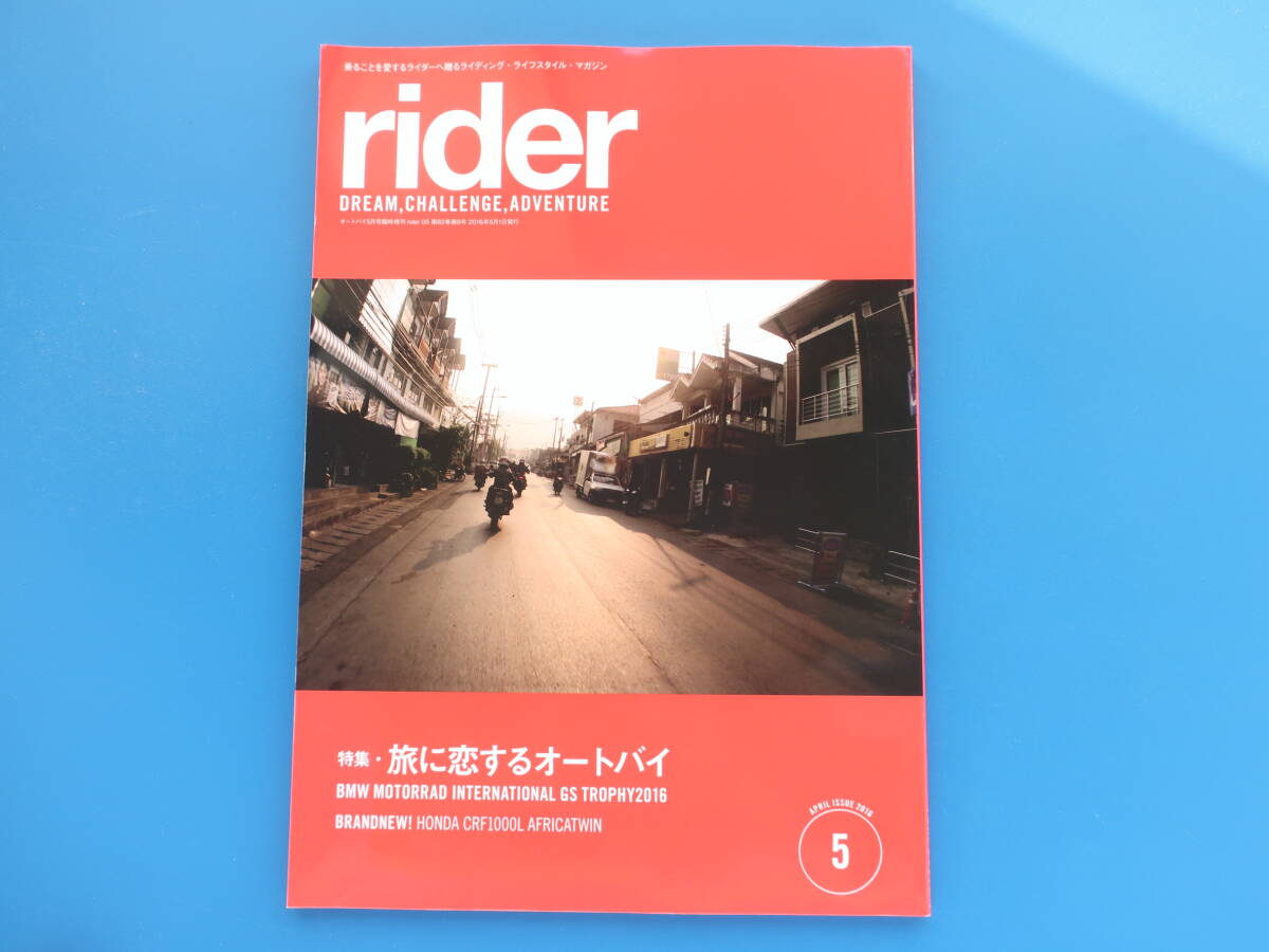 > rider 2016年5月号 オートバイ臨時増刊/オフロードバイクアドベンチャーチャレンジ/特集:旅に恋する/BMW MOTORRAD GS/HONDA CRF1000L