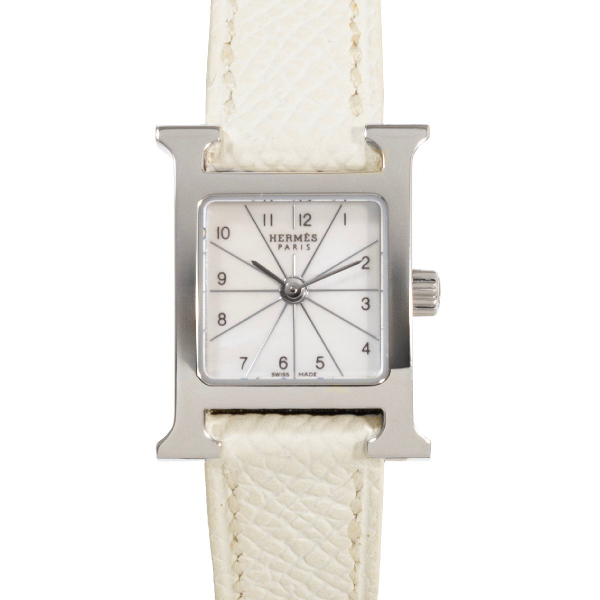 - 【半年間保証】HERMES エルメス Hウォッチ ミニ HH1.110 □L刻印 SS×レザー ホワイトシェル×シルバー×ホワイト クォーツ 腕時計