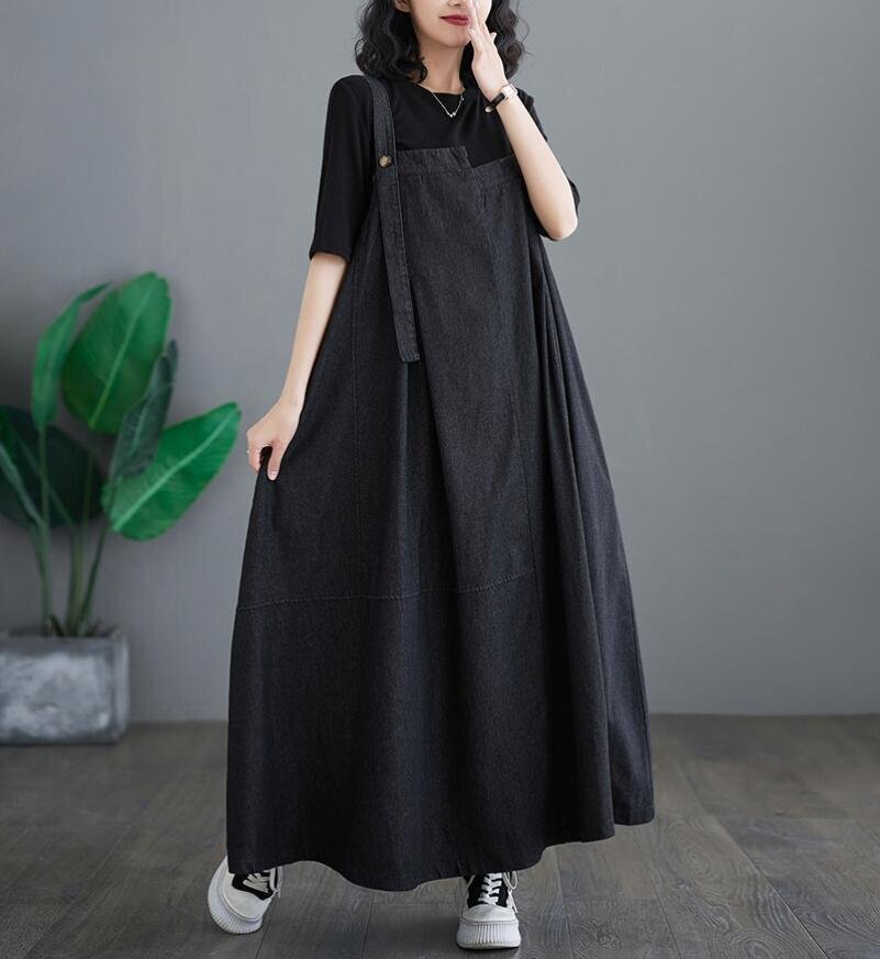- LB319 ジャンパースカート レディース デニム ワンピース サロペットスカート キャミワンピース ゆったり オーバーサイズ ブラック