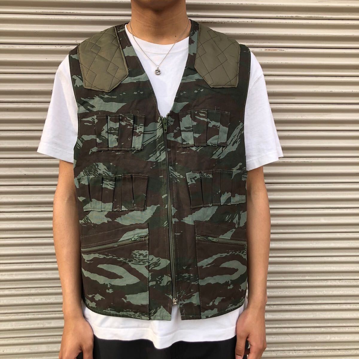 > 90s ユーロ ヴィンテージ リザードカモ ハンティング ベスト colamtiss フレンチ フランス軍 ユーロ 80s ミリタリー 迷彩 タイガーカモ L