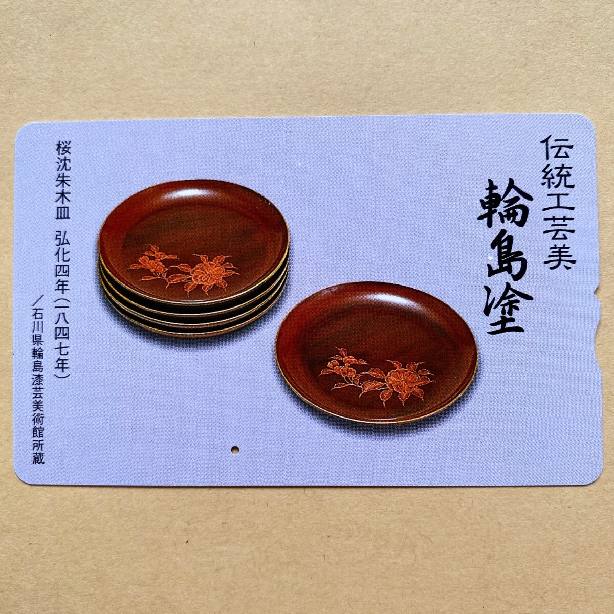 - 【使用済】 ふみカード 伝統工芸美 輪島塗 桜沈朱木皿 弘化四年(一八四七年)
