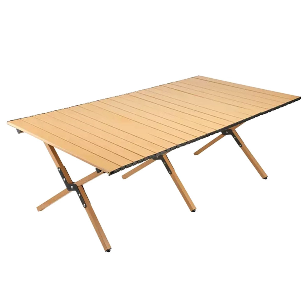 - 【特】ロールトップ アウトドアテーブル キャンプテーブル 折りたたみ式 簡単組立 軽量アルミ製 収納バッグ付 (120x60x45cm木目調)
