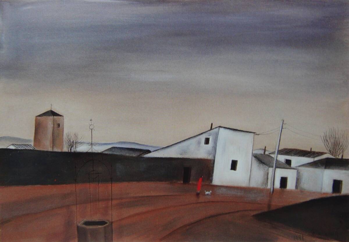 - 斎藤真一「古い井戸のある町」 希少画集・額装画、日本製新品額縁、状態良好、送料無料