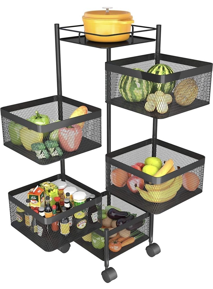 - キッチンワゴン 調味料ラック 収納ワゴン キャスター付き 自由回転 バスケットラック 6段 幅27×奥行27×高さ93.5cm 耐荷重30kg ブラック
