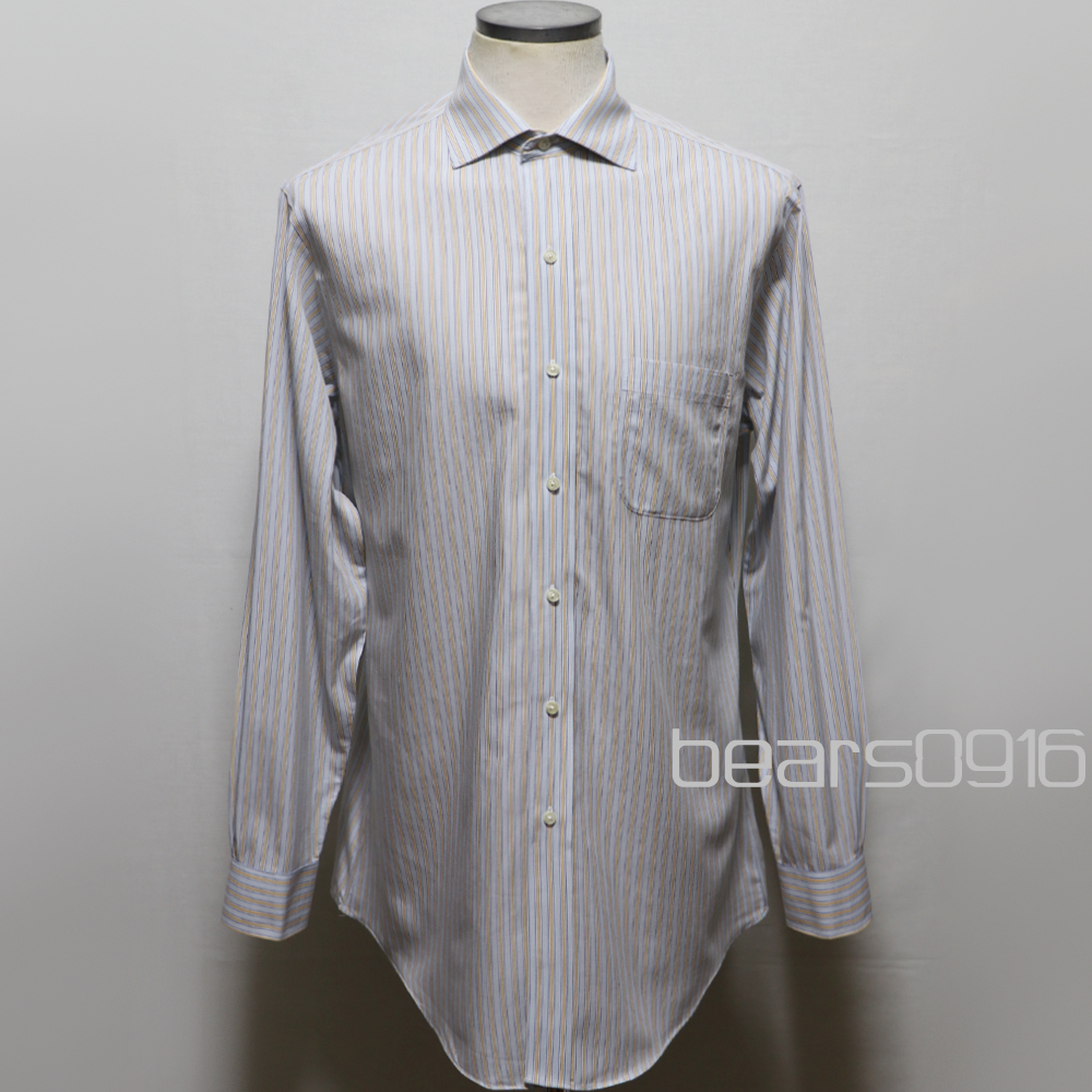 - アメリカ購入品 美品 BROOKS BROTHERS ブルックスブラザーズ ホリゾンタル ワイドカラーシャツ 水色×白×黄 ストライプ 15 1/2-33