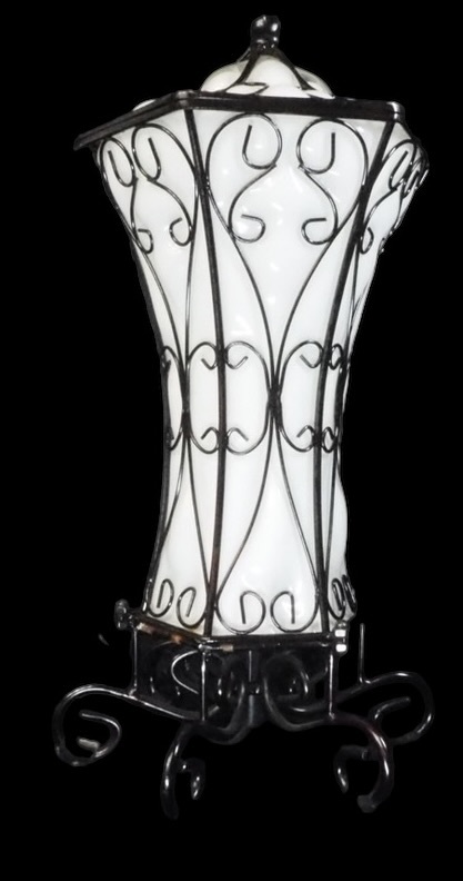 - 昭和初期〜中期ビンテージ ミルクガラスとワイヤーフレームのスタンドランプ ハンドメイド 吹きガラス 点灯確認済み KKY604