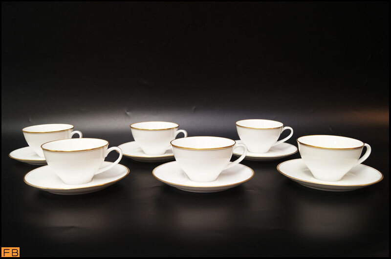 - 1455-大倉陶園◆カップ&ソーサー 6客 ゴールドライン 金彩 OKURA