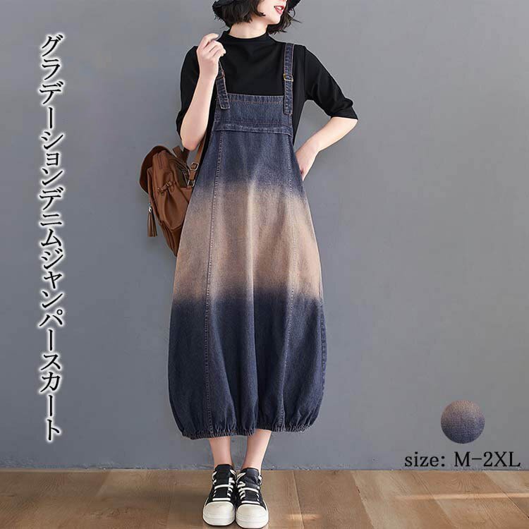 - LB698 デニム サロペスカート スカート ロング マキシ レディース サロペット 綿 Aライン ハイウエストスカート XLサイズ