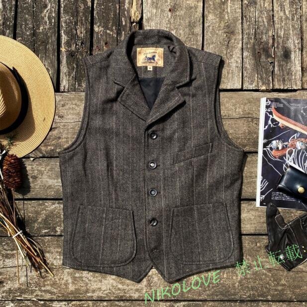 - LB639 19世紀スタイルアンティークヴィンテージ復刻 品のある上質の生地感クラシカルピンストライプウールベスト Sサイズ