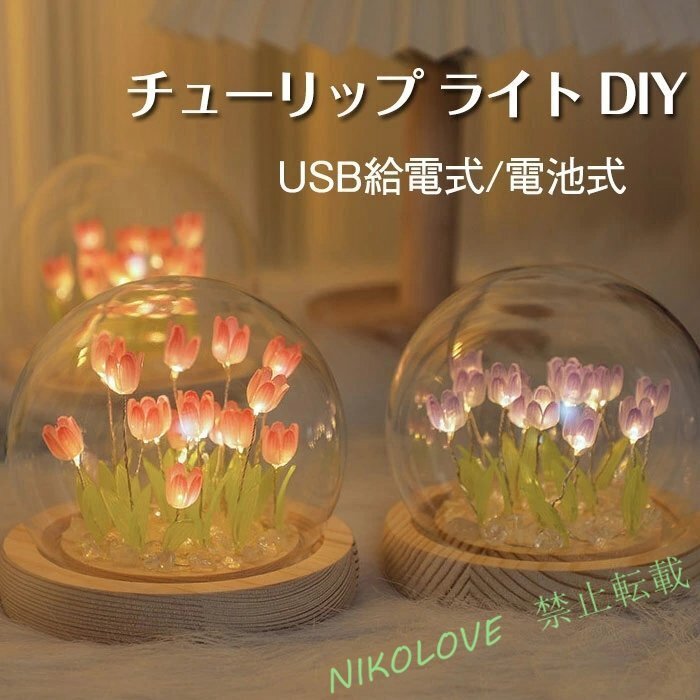 > LC480 チューリップ ライト DIY テーブルランプ DIY 16本のチューリップ ライト 電池式/USB給電式 間接照明 LEDライト