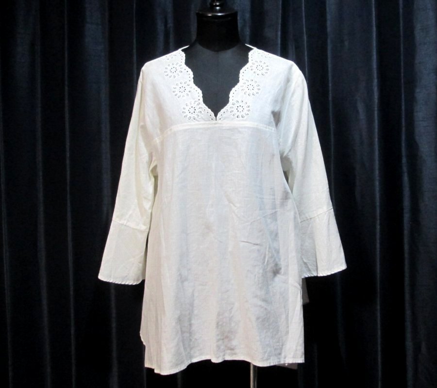 > 【Golden Bear】淡いクリームベージュ系・刺繍付き・アンブレラスリーブ風・チュニック.カットソー・Lサイズ!
