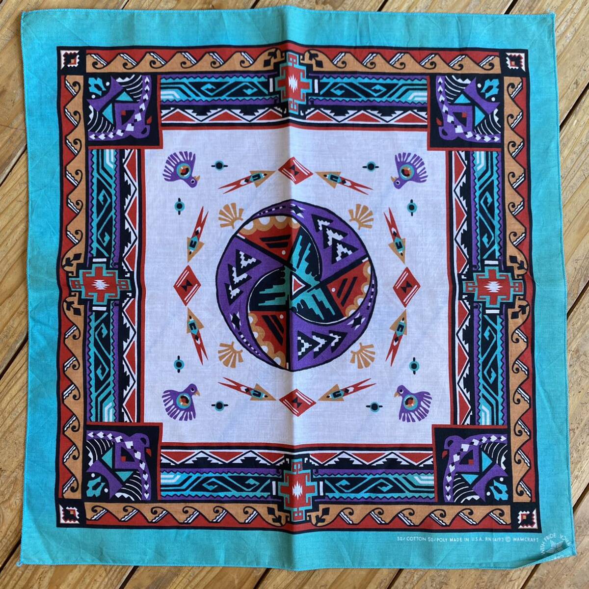 - 送料無料 Vintage バンダナ ネイティブ柄 アメリカ仕入れ ハンカチ お洒落 小物 エメラルドブルー カラフル 雑貨 ヴィンテージ A0908