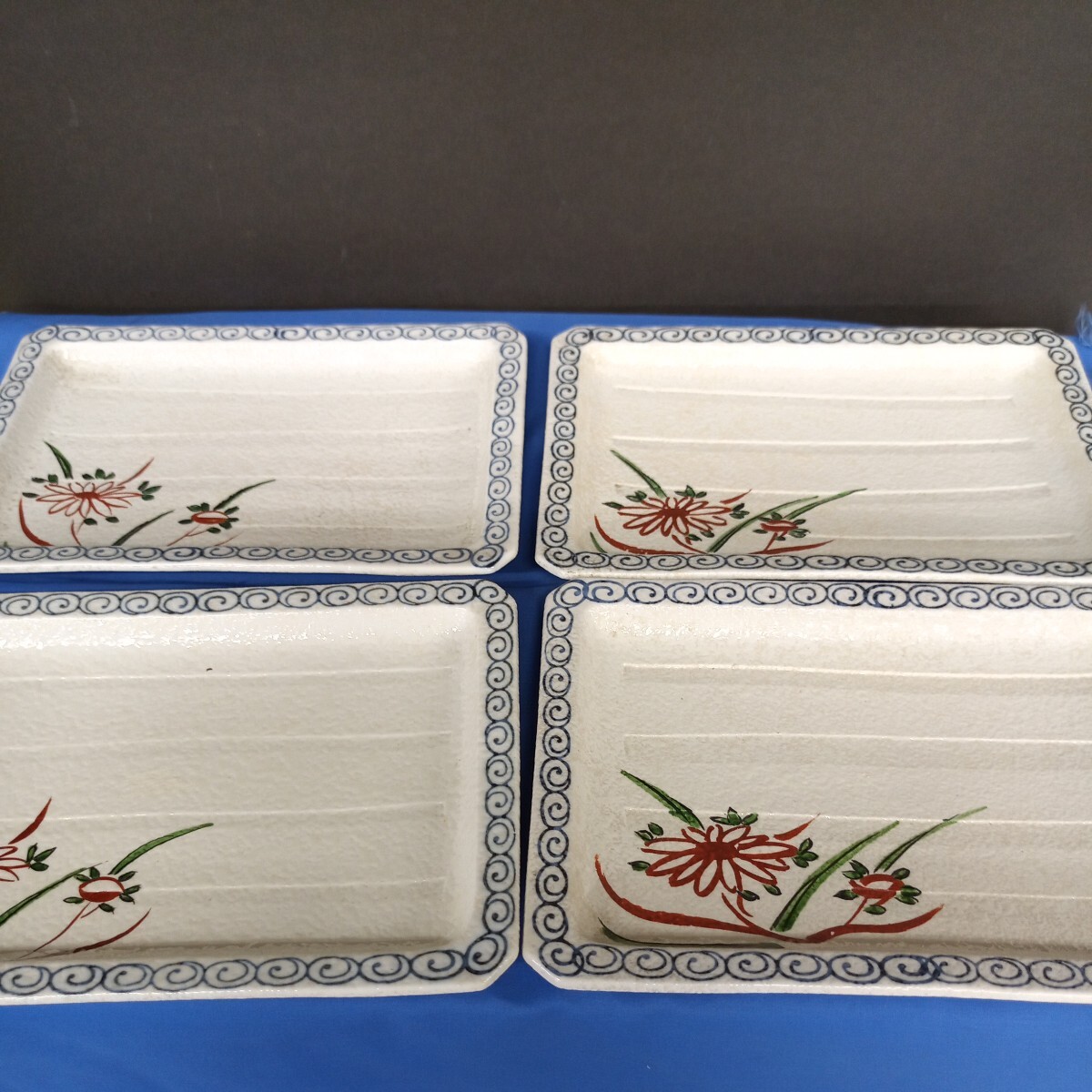 - 昭和レトロ■花柄 長角皿 刺身皿 焼き物皿 4枚 和食器 食器