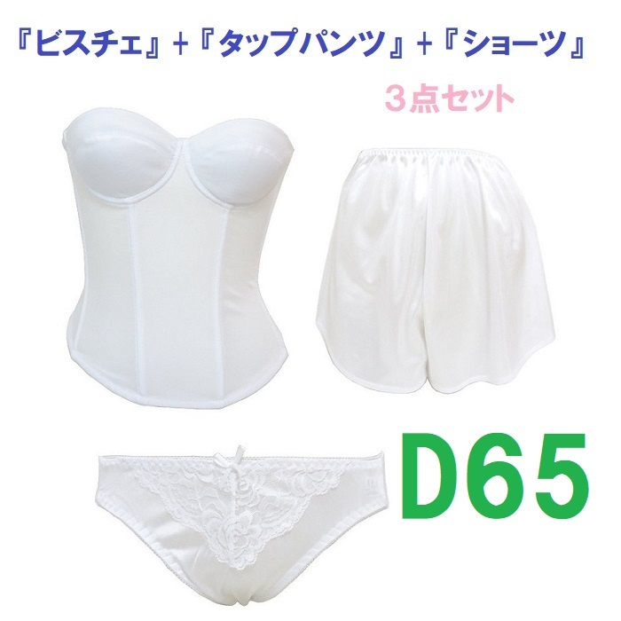 - D65/M/M・白◆ブライダルインナー ビスチェ&タップパンツ&ショーツ 【3点セット】 新品