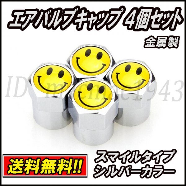 - ■送料無料 即決 スマイル エアバルブ 4個セット 金属 ニコちゃん キャップ ホイール タイヤ 汎用 軽量 エアーバルブ アルミ カスタム 3